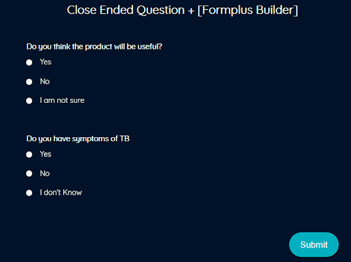 Most commonly they take the form of multiple choice questions where respondents choose from a set list of answers. Closed-ended questions can be answered with Yes or No or they have a limited set of possible answers such as. Alternatively a closed-ended question may be phased for a yesno answerClosed-ended questions may be used to keep conversation short to request a direct answer to target specific information or to influence an answer.